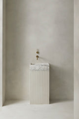 Please note that this product includes only the sink; the cabinet shown in the images is not included. For complete vanities, please visit our sister brand: Pétra's collection.